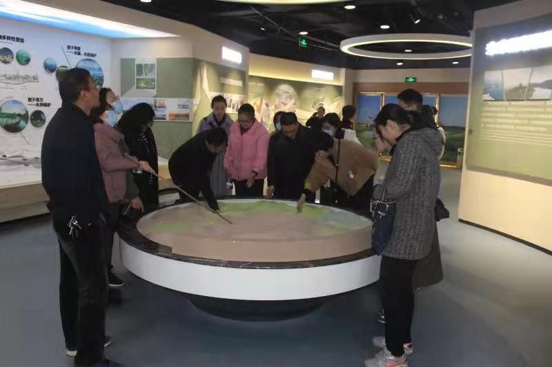 随后,在解说员的带领下,教师们参观了科普馆,充分感受了声光电等技术缔造出的湿地魅力和淇河文化,尤以在“初识淇河”展厅背景墙中,由若干小型屏幕拼接出的淇河水脉,更是演绎出了源远流长的淇河文化,令人震撼。