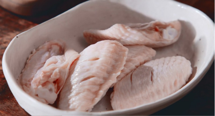 2.鸡翅加入清水,浸泡20分钟,让鸡翅出血水,尽量多清洗几遍,直到血水洗干净为止,然后挤干水分备用,洗出血水的目的是让鸡翅吃起来不会腥。