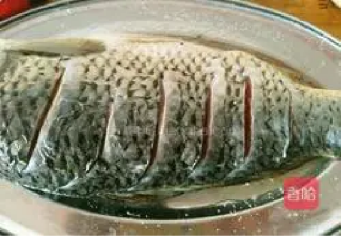 3.均匀抹上盐,料酒,刀口处,鱼膛内都要抹上。