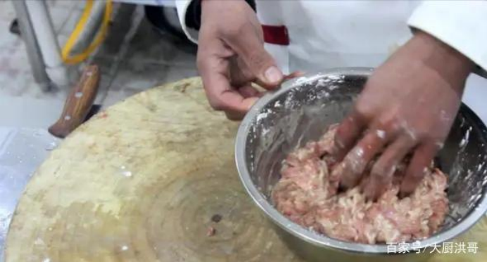 3.加入生姜末,顺着一个方向不停的搅拌,加入清水(加水的时候,要分次放入,这样能更好的控制水量),见羊肉片全部上劲,加少许清油进去搅拌几下(放入清油的目地是为了后期烹饪不会粘在一起)。