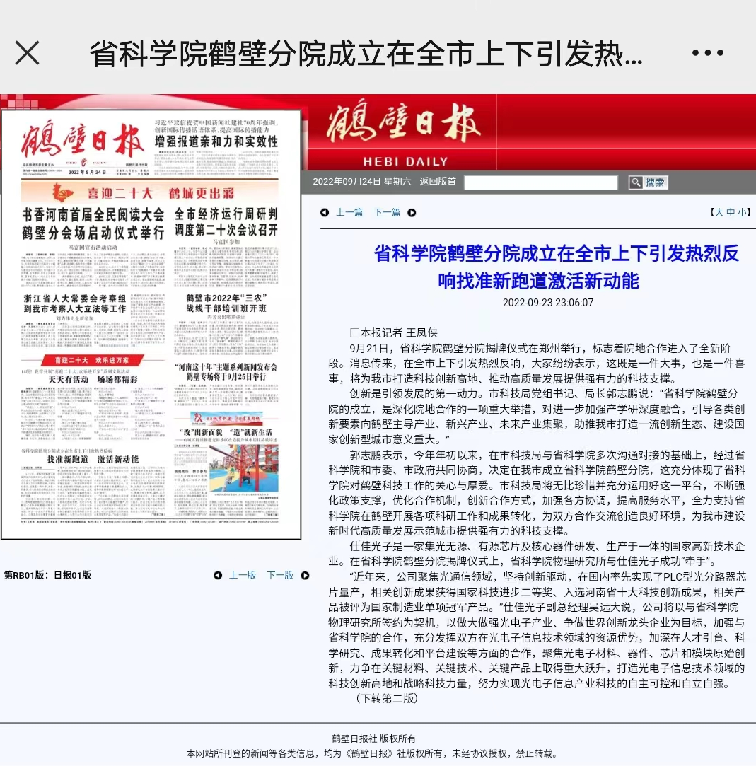 9月23日上午,304永利集团副经理王跃强副教授接受《鹤壁日报》采访,就省科公司鹤壁分院挂牌成立发表自己的看法。