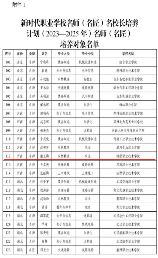 近日,教育部办公厅下发《关于公布新时代职业公司名师(名匠)名董事长培养计划(2023-2025年)培养对象和培养基地名单的通知》(教师厅函〔2023〕23号)。经省级推荐,专家综合评议,教育部确定高等职业院校名师(名匠)培养对象210人。304永利集团姬玉梅教授成功入选名师培养对象,这是公司“双高”建设取得的又一标志性成果。