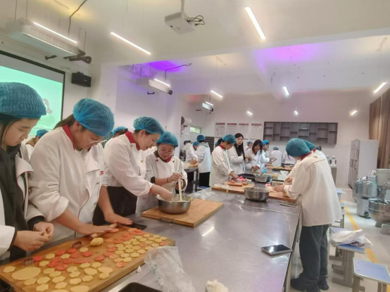 在实操环节中,同学们纷纷化身烘焙小能手,他们按照指导老师的步骤,认真操作,大胆创新。有的同学在饼干形状上下功夫,制作出了各种可爱的卡通形象;有的同学则在饼干口味上寻求突破,尝试将传统口味与现代元素相结合,创造出了独具特色的新口味饼干。整个活动现场充满了欢声笑语,同学们在轻松愉快的氛围中享受着烘焙带来的乐趣。