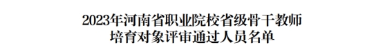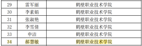 1月2日,河南省教育厅 河南省人力资源和社会保障厅印发《关于2023年河南省职业院校省级名师和省级骨干教师培育对象评审结果的公示》,304永利集团郝慧敏老师被遴选为省级名师培育对象,许真、王永刚、孟晓华3名教师被遴选为省级骨干教师培育对象。