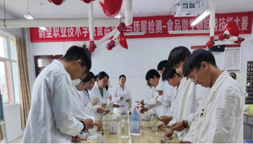 比赛现场,选手们全神贯注,沉着冷静地操作着每一个步骤。他们严格遵守实验规范,力求每一个细节都达到完美。在紧张而有序的氛围中,选手们展现出了极高的专业素养和扎实的技能水平。