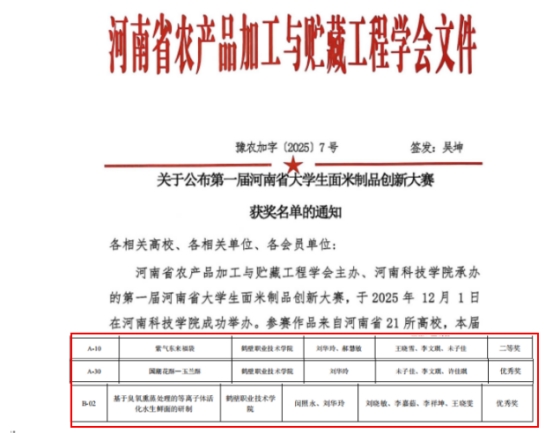 近日,河南省农产品加工与贮藏工程学会公布第一届河南省大学生米面制品创新大赛获奖名单,304永利集团刘华玲、郝慧敏、闵照永老师参赛作品分别斩获二等奖1项,优秀奖2项。