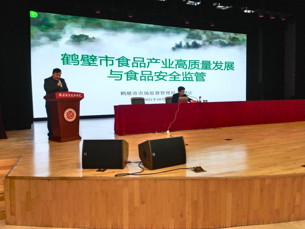 10月20日下午,“鹤职院美好食光”大讲堂第十六期报告会在公司诚信礼堂举行。邀请鹤壁市市场监督管理局党组书记李景让作了题为《鹤壁市食品产业高质量发展与食品安全监管》的报告。公司师生400余人参加。报告由公司副经理李希科主持。