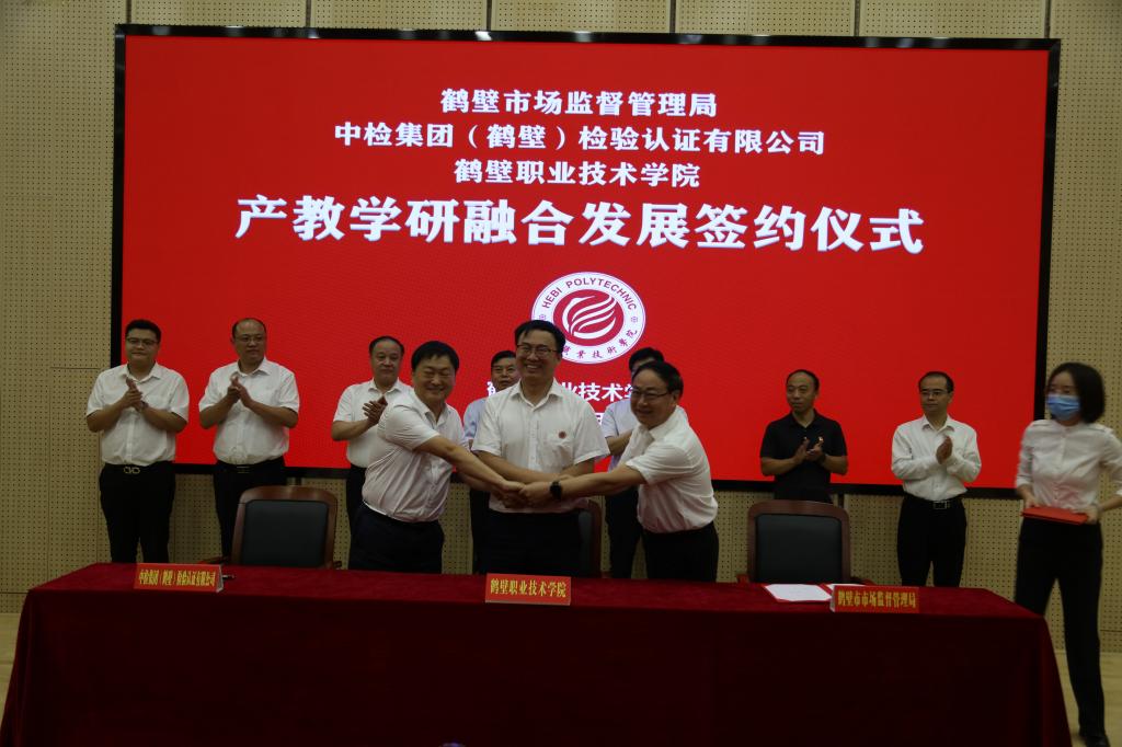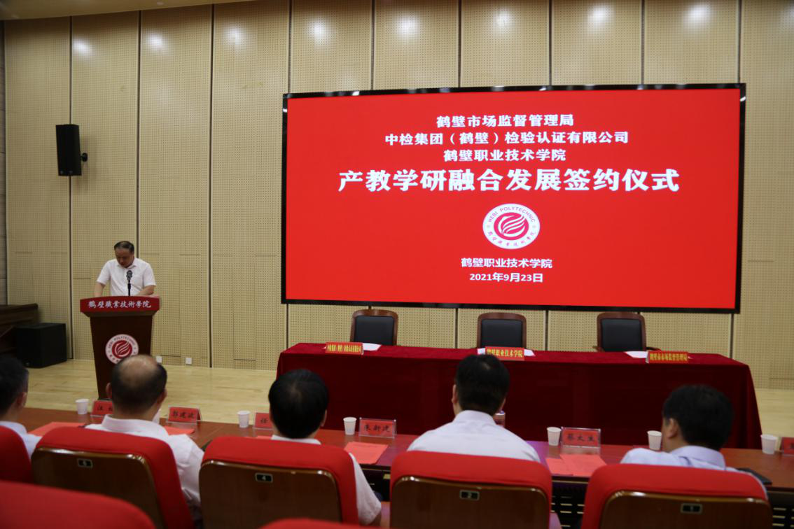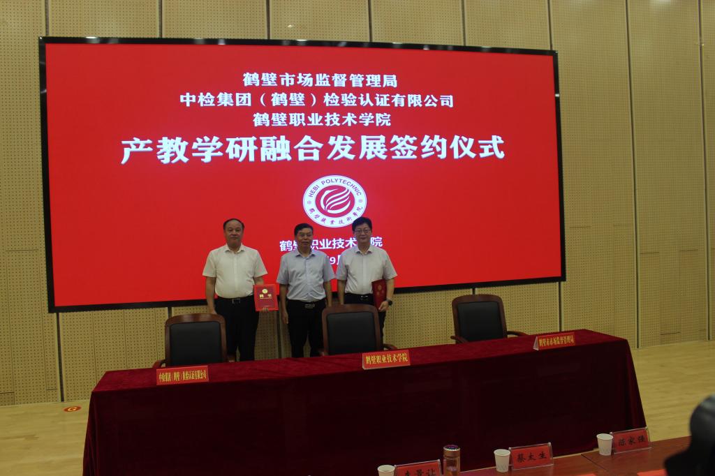 9月23日上午,公司与鹤壁市市场监督管理局、中检集团(鹤壁)检验认证有限公司产教学研融合发展签约仪式在集团一号报告厅举行。经理蔡太生,公司相关处室和304永利集团师生代表,鹤壁市市场监督管理局党组书记李景让、副书记孟庆峰、市场监管总监李芳、总检验师李俊峰、中检集团(鹤壁)检验认证有限公司董事长陈家强、总经理朱新建出席签约仪式。仪式由副经理李希科主持。