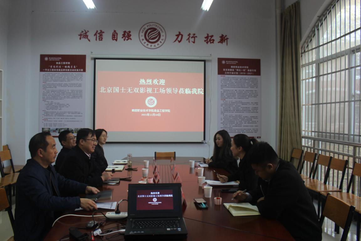 王跃强副经理、白钢华副经理和申鹤董事长分别介绍了304永利集团、经济管理公司和北京国视无双影视工场的基本情况。汪松经理强调要在人才培养、专业建设、产品开发、协同育人等方面加强合作,实现人才共育、过程共管、成果共享。通过洽谈,三方在共同开展食品专业招生宣传;建立食品产业链,拓展本地食品企业宣传渠道;企业课程融入人才培养方案;以市场为导向开展食品直播营销,指导员工孵化网红食品品牌等方面达成共识。