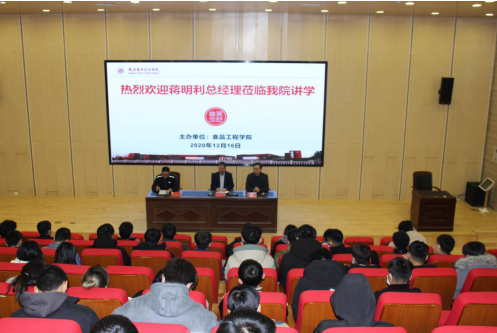 12月16日下午,“鹤职院美好食光”大讲堂第八期报告会在公司一号报告厅举行。邀请鹤壁金地食品配料有限公司总经理、郑州牧业工程高等专科公司“特聘教授”、浙江嘉善标准化协会专家委员、河南省食品添加剂工业协会副秘书长蒋明利莅临公司作了题为《抢险救灾户外应急便利食品》的报告。