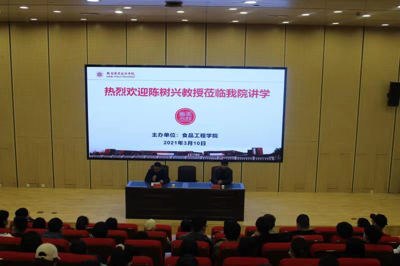 3月10日下午,“鹤职院美好食光”大讲堂第十期报告会在公司一号报告厅举行。邀请河南科技大学食品与生物工程公司教授,硕士生导师,陈树兴博士作了题为《奶酪加工技术及营养与健康》的报告。党总支书记兼经理汪松、副书记葛培运及160余名师生参加报告会,报告由副经理王跃强主持。