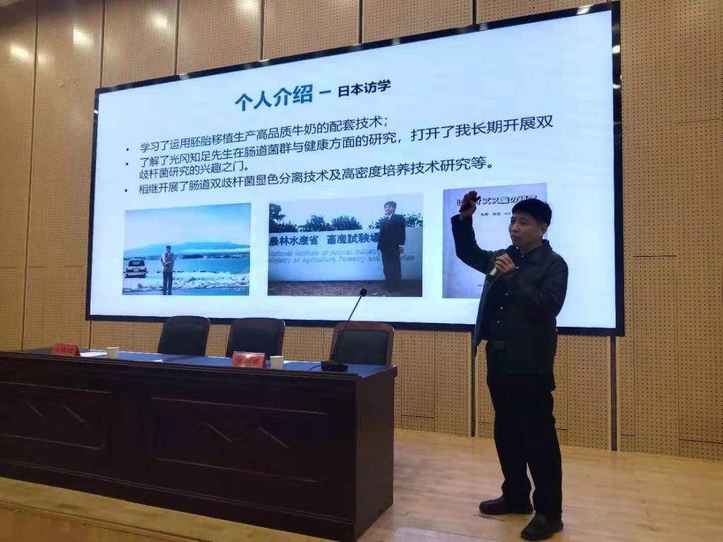 陈教授还兼任漯河食品职业公司副经理,曾先后在日本福冈县、美国兰斯顿大学和东南俄克拉荷马州立大学做高级访问学者。在报告中,他结合自己多年在国内外的科研工作经历,以乳制品开发为案例,与师生们分享了自己在产品开发过程中的经验和教训,展望了乳制品行业的发展前景,阐述了奶酪加工的技术难点及应用以及奶酪对人体肠道菌群乃至健康的关系,精彩的报告引来了师生们的阵阵掌声。