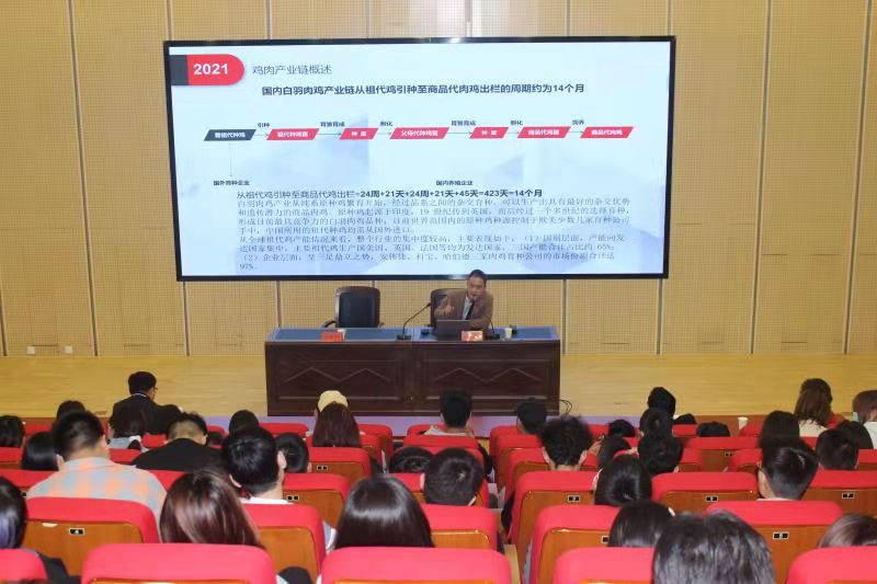 4月21日下午,“鹤职院美好食光”大讲堂第十三期报告会在公司一号报告厅举行。邀请河南永达食业集团市场研发部副总监付强作了题为《鸡肉美食探秘之旅》的报告。经理汪松等160名余师生参加了报告会,报告由副经理王跃强主持。