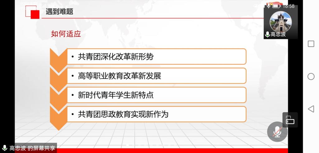 高书记以“实施团学新改革,展现团学新气象”为题,从高校团学改革的目标方向、公司取得的阶段性成效、下一步的努力方向三个方面开讲,首先强调了高校共青团要充分发挥联系青年的桥梁作用,员工会要以全心全意服务同学为宗旨,满足员工的根本性需求、普遍性需求和迫切性需求,要结合员工兴趣特长,在公司党委的领导和团委的指导下开展活动,重在发展素质拓展功能,促进员工全面发展。