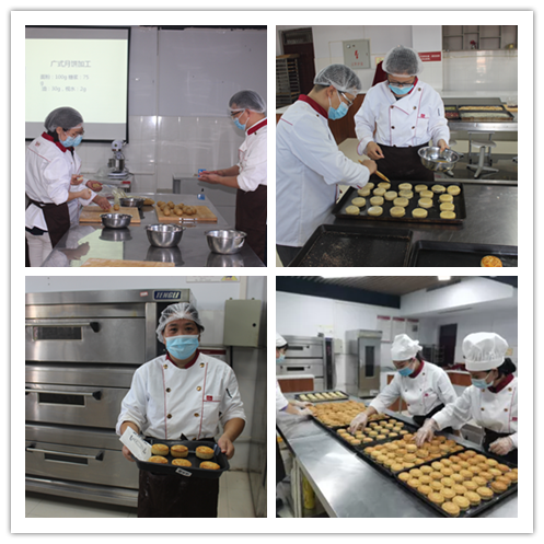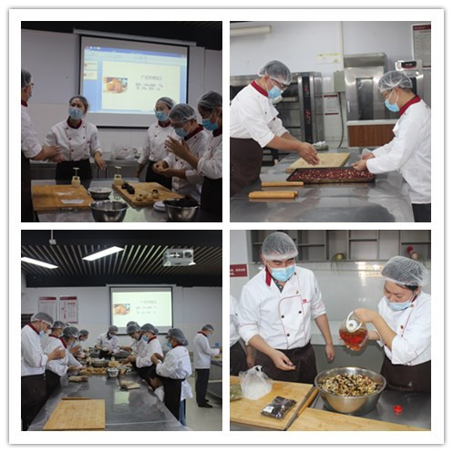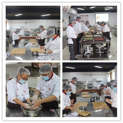 下午2点,304永利集团教职工齐聚烘焙实训室,分工会主席葛培运对教职工热情的节日祝福之后,老师们兴致勃勃地开始做月饼。在郝慧敏老师的指导和示范下,从配料选取、饼皮制作,到馅料和饼皮称重,再到包馅、压模成型,老师们都严格流程,精心制作。