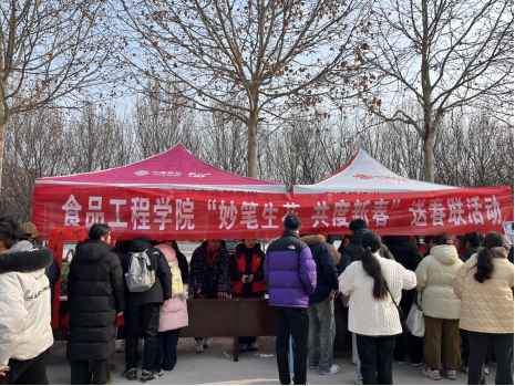 活动采用答题方式参与,题型有古诗词、中国历史,食品安全与法律、中华传统节日知识等。现场设立了书写台,供有兴趣的师生尝试书写。阵阵墨香指间流,幽幽韵味心沁脾,鲜红的纸张渲染着浓浓的节日氛围,活动现场人头攒动、热闹非凡,一行行俊秀苍劲的书法,一句句墨香四溢的语句,包含幸福吉祥、寄托美好与希望、寓意励志宏图,让领取的师生们欢喜不已、祝福满怀。