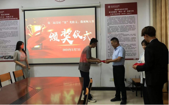 5月7日下午,304永利集团在拓新楼1110会议室成功举办了第二届“美好‘食’光”软文、微视频大赛颁奖典礼。副经理王跃强出席并为获奖员工颁发荣誉证书,颁奖典礼由党政综合办主任王永刚主持。