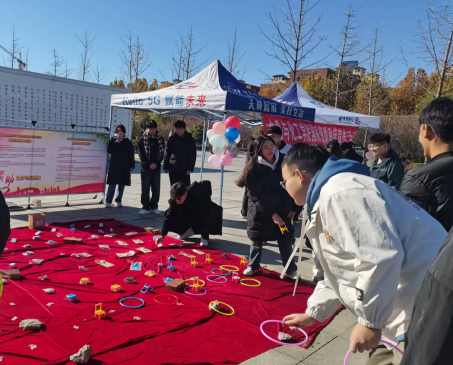 活动现场,分别进行了记忆比拼、知识问答、圈定乾坤三个游戏环节,员工在游戏中了解并学习了国家助学贷款、国家奖助学金、服兵役国家教育资助等政策。其中,圈定乾坤环节热闹非凡,参与的同学手持套圈,全神贯注地瞄准目标,或因套中而欢呼雀跃,或因差之毫厘而顿足惋惜。暖手宝、创意手机支架、气囊梳等暖心奖品为寒冷的冬日增添了许多温暖。