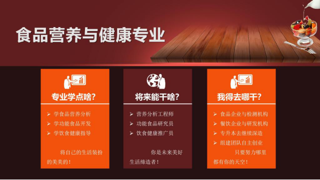 核心课程:食品化学、营养学基础、食品营养与分析、食品工艺学、食品安全学、营养配餐与设计。