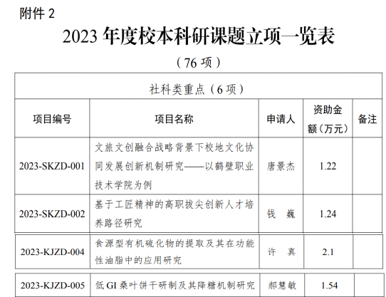 2023年5月9日,公司科技处下发《关于2022年度校本科研课题结项和2023年度校本科研课题立项通知》,公司副经理王跃强主持的《果蔬固体饮料配方工艺关键技术研究》获重点课题优秀奖,杜喜玲老师主持的《草莓果蔬防腐保鲜研究》获一般课题三等奖;立项校级科技类重点课题两项,科技类一般课题两项。