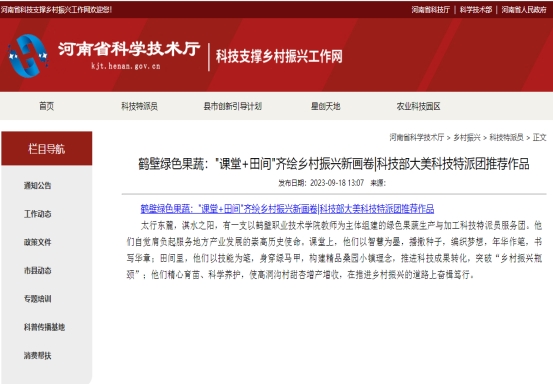 鹤壁市绿色果蔬生产与加工产业科技特派员服务团 |
