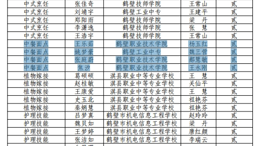 32、鹤壁市第二届职业教育技能大赛烘焙优胜奖4项