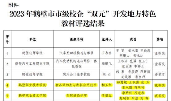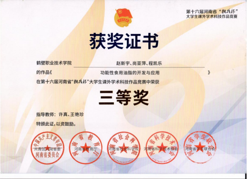 鹤壁市第二届职业教育技能大赛烘焙优胜奖4项 |
