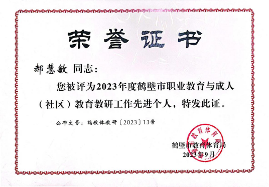 24、郝慧敏获2023年河南省高职高专院校信息素养大赛优秀指导教师