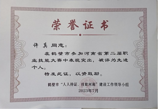 27、鹤壁市参加河南省第二届职业技能大赛先进个人