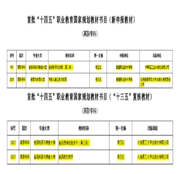 6、《食品标准与法规(第二版)》《学前儿童卫生与保育》《食品感官检验技术》第三版《食品微生物学》获首批“十四五”职业教育国家规划教材