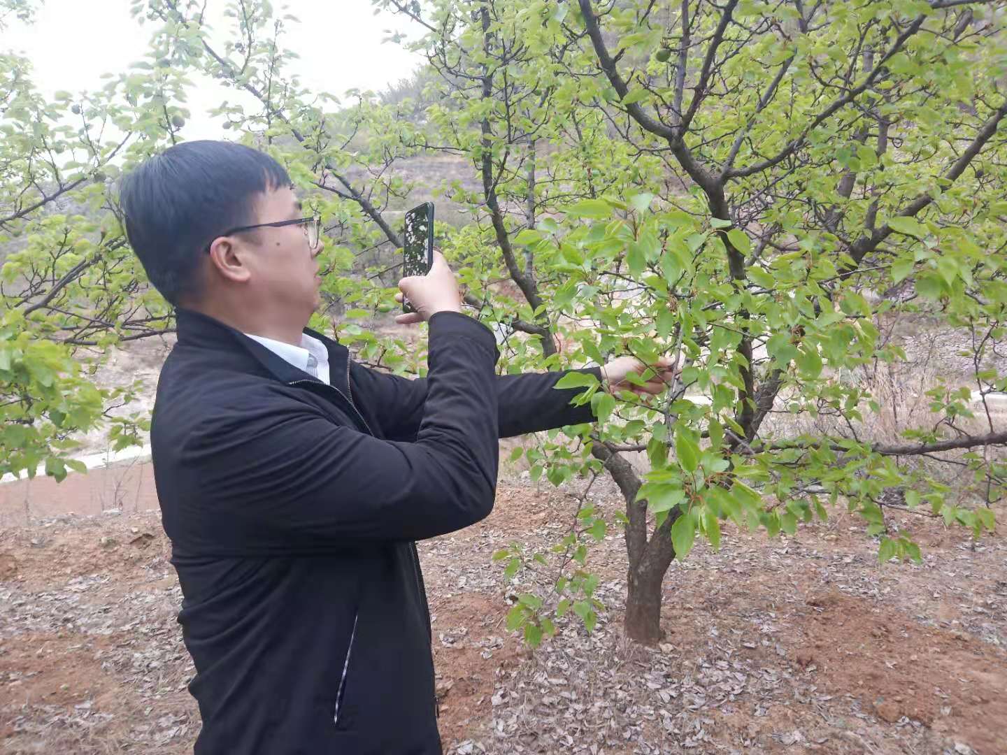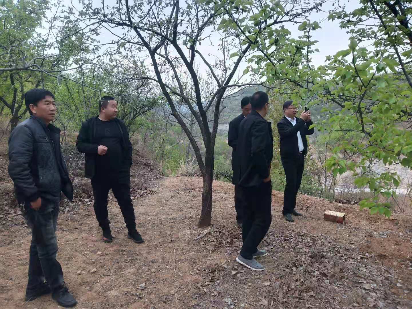 随后,汪松经理一行到杏树种植区进行了实地考察,详细了解杏树品种及种植情况。