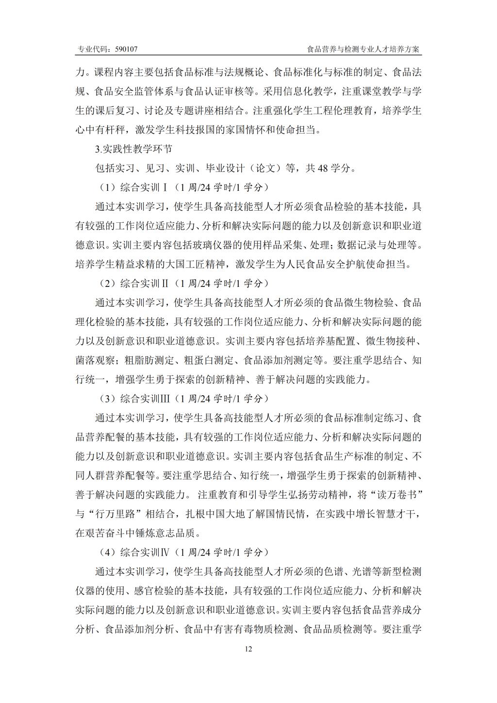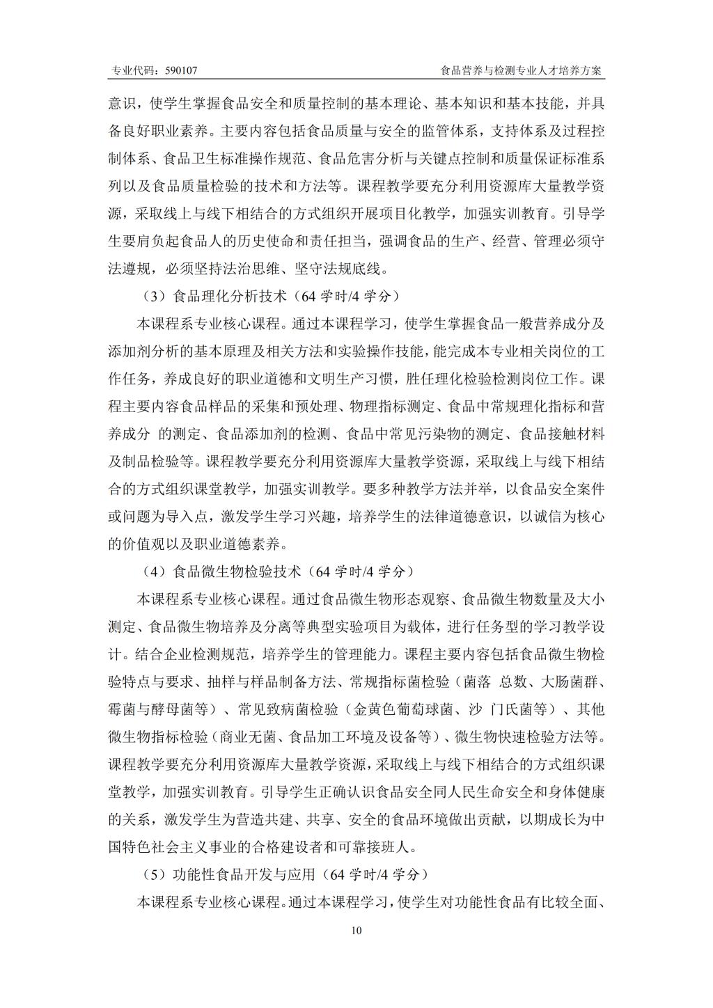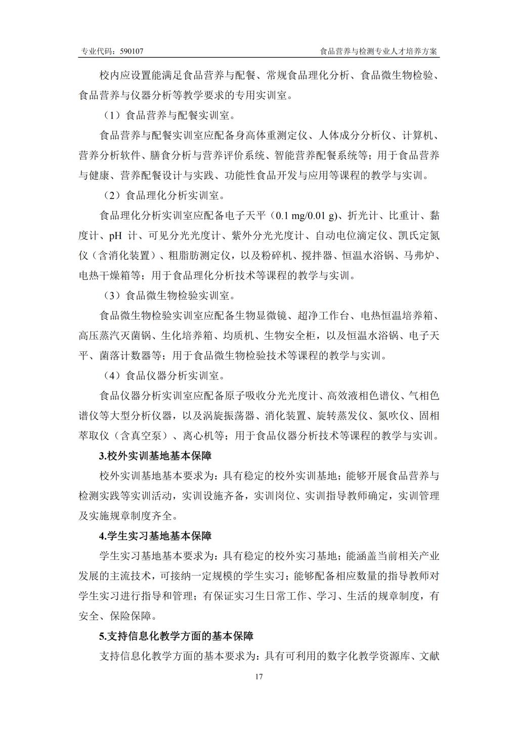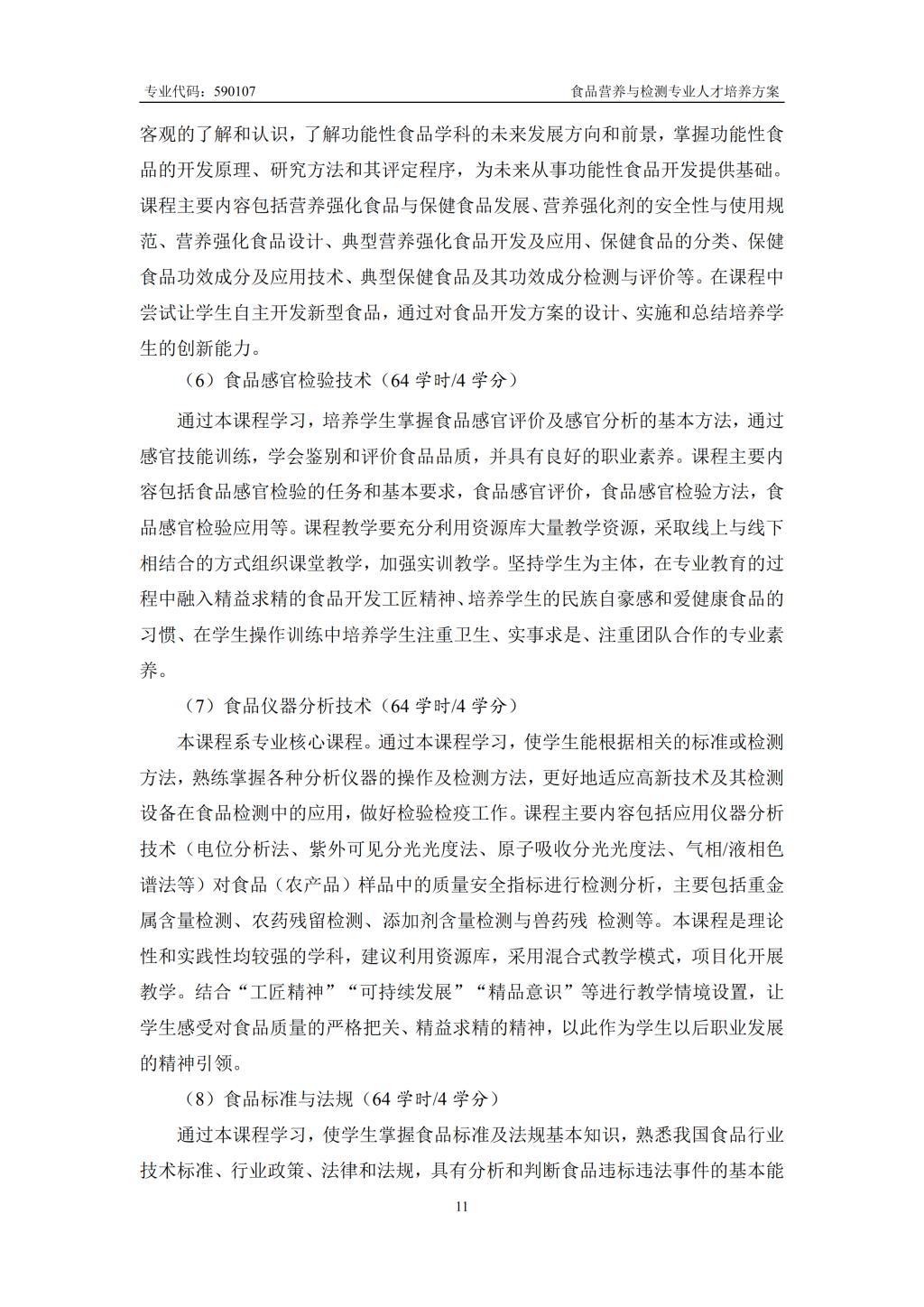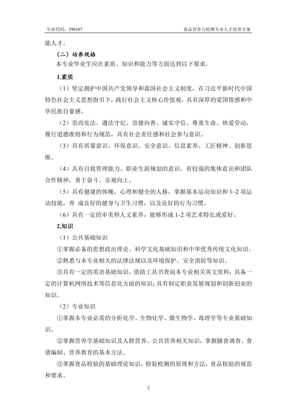 食品营养与检测专业人才培养方案