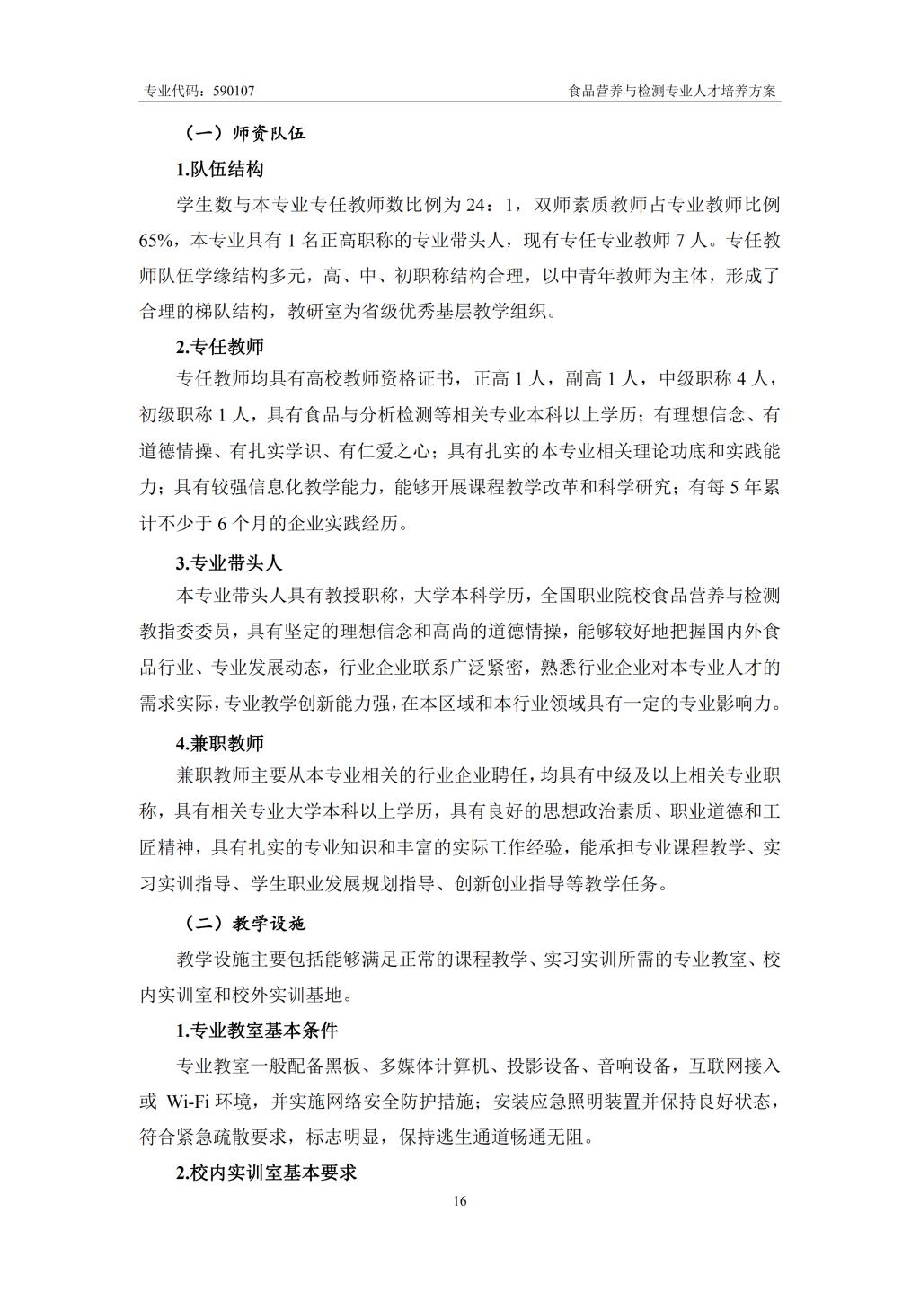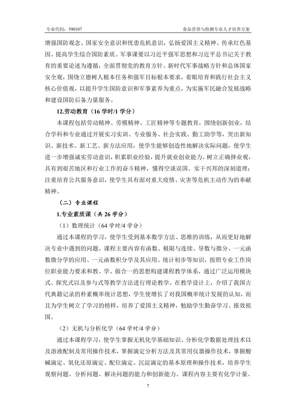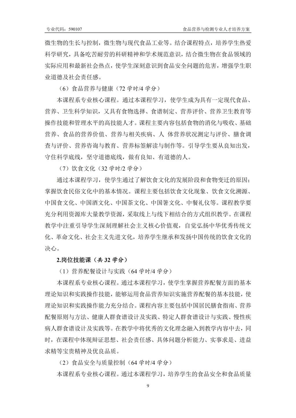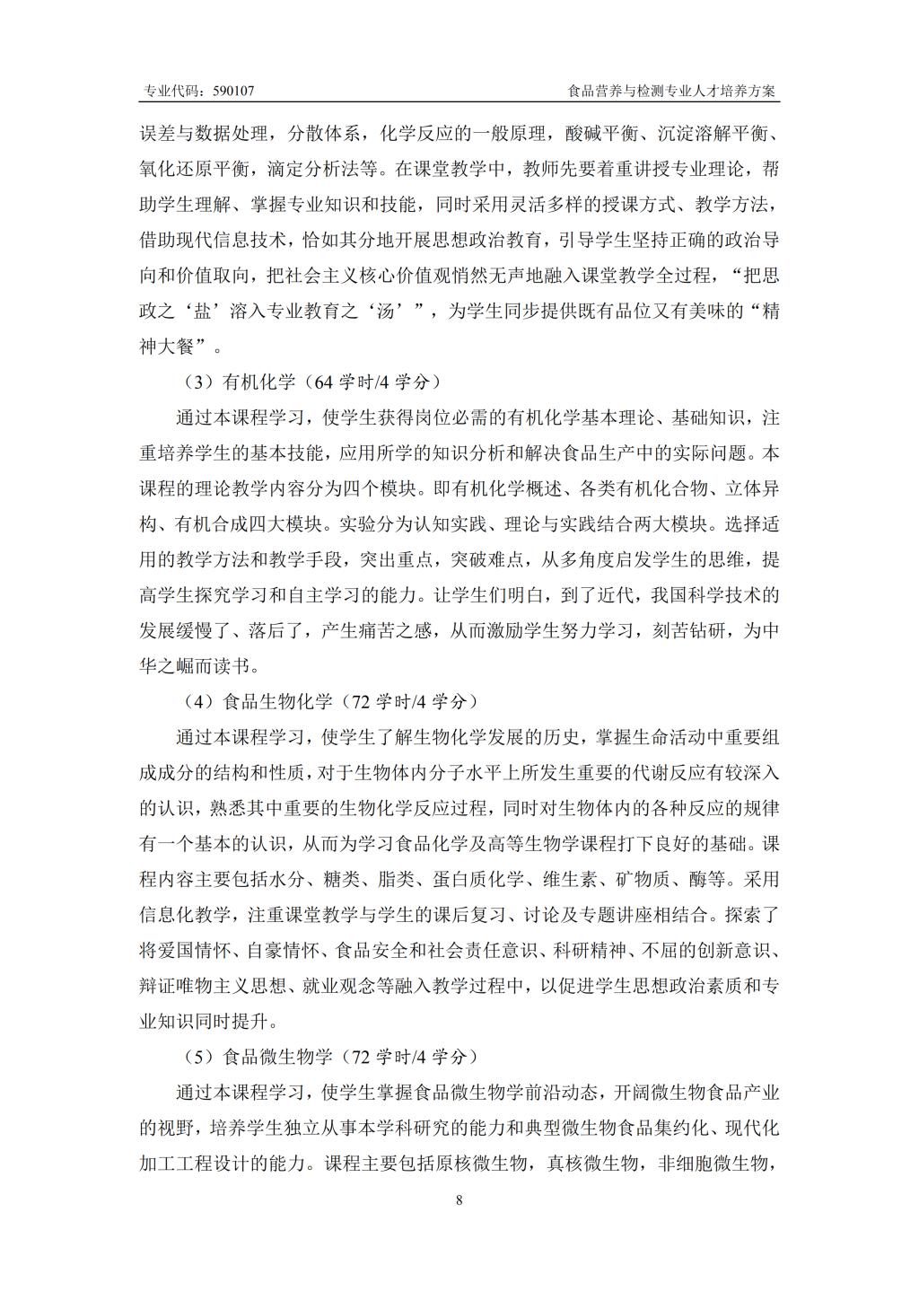 食品营养与检测专业人才培养方案
