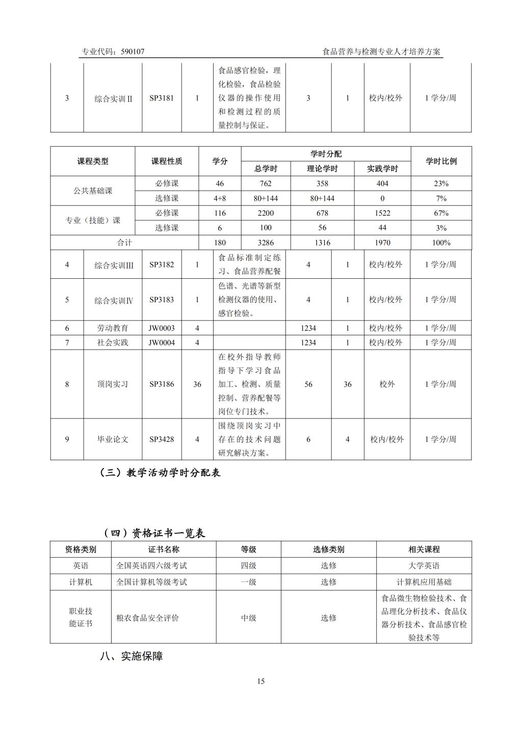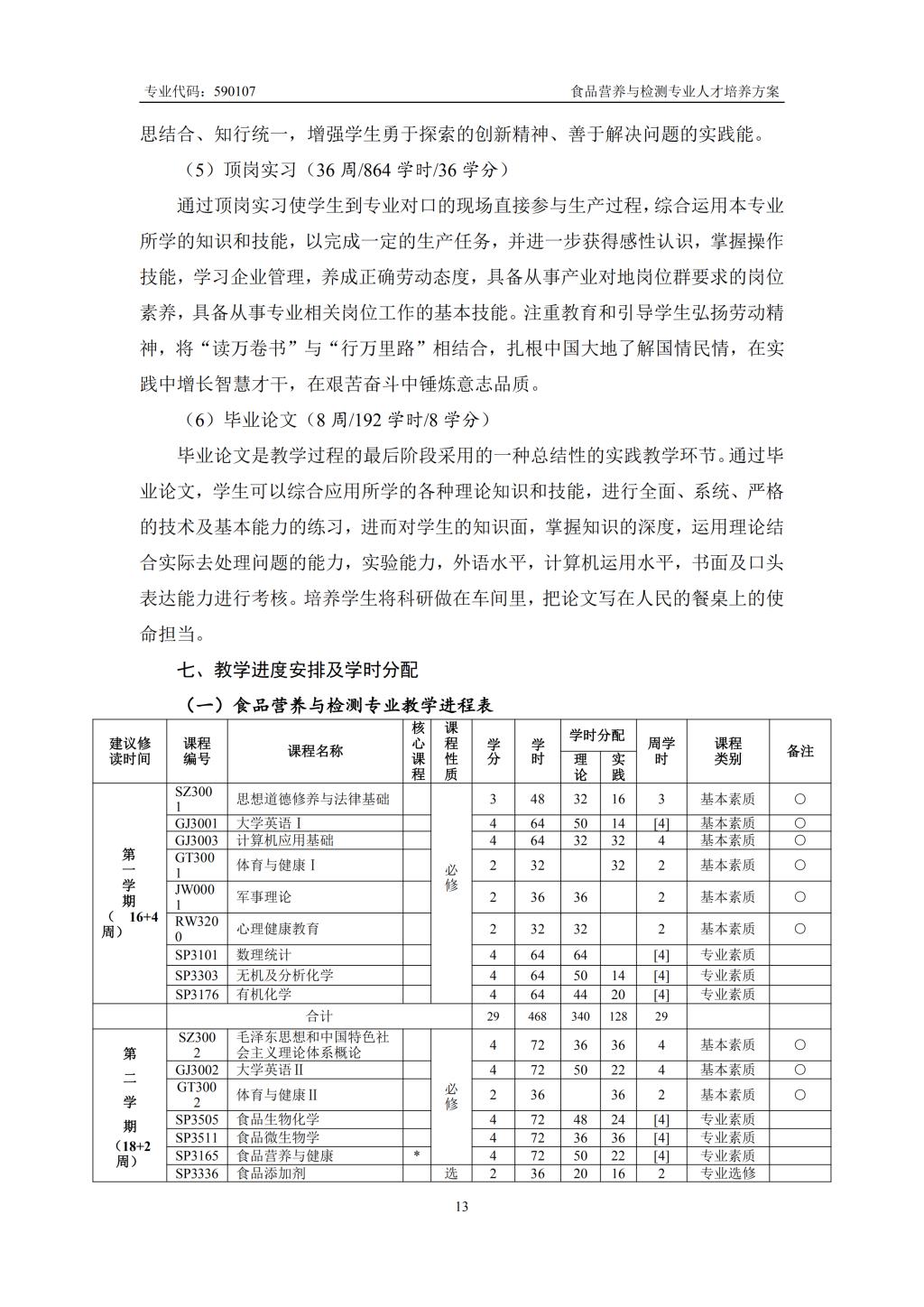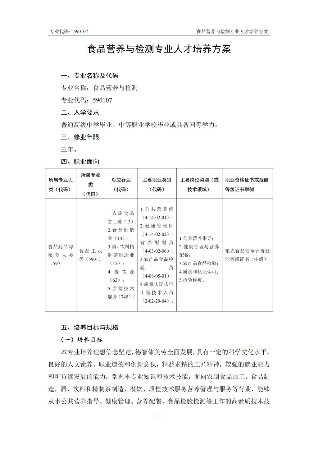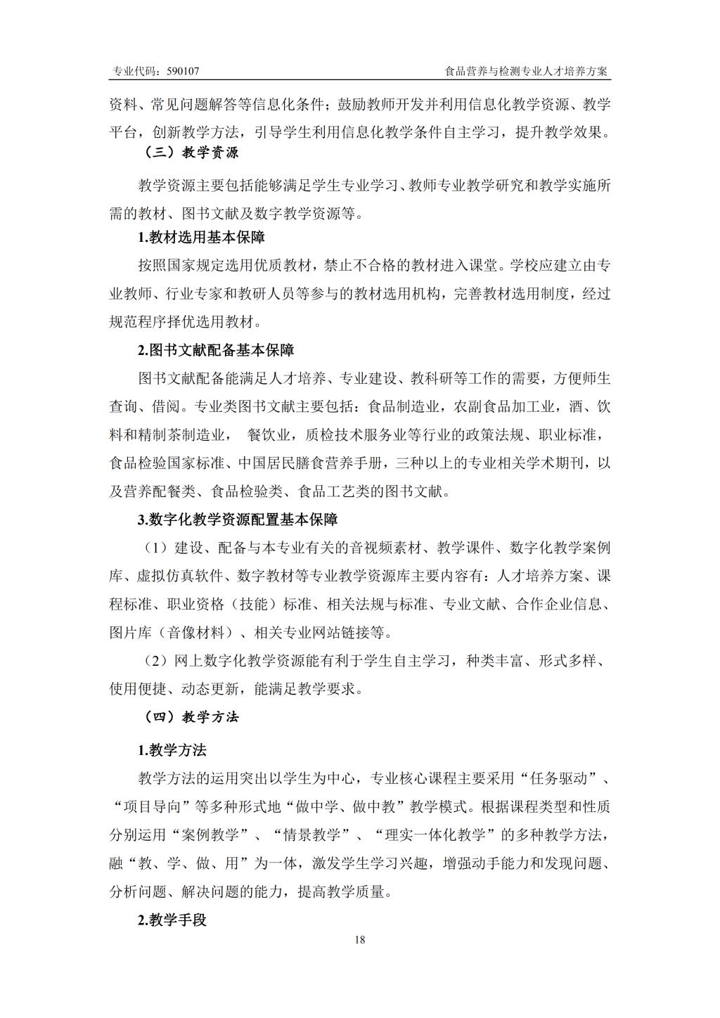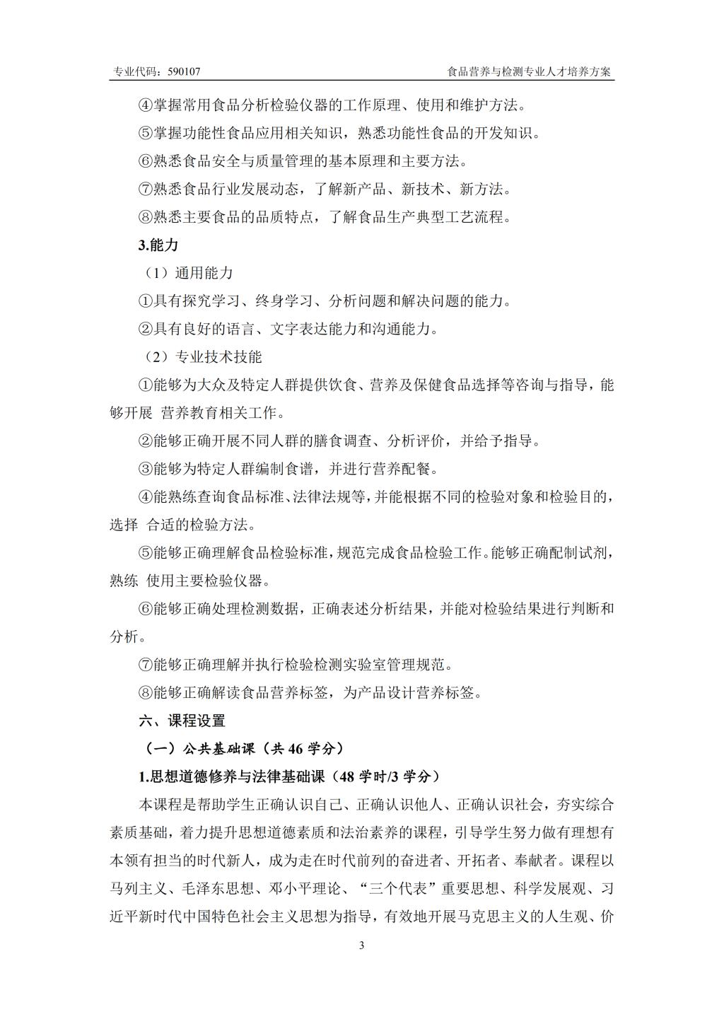 食品营养与检测专业人才培养方案