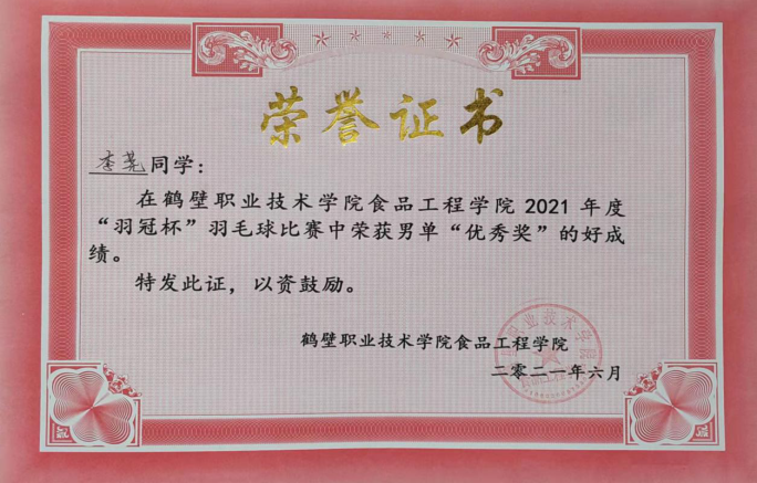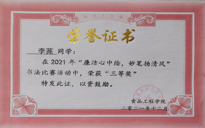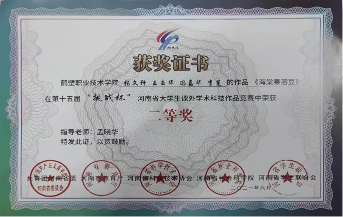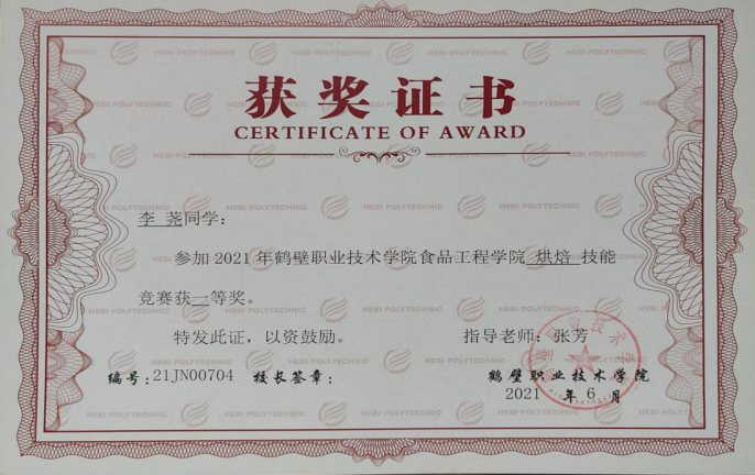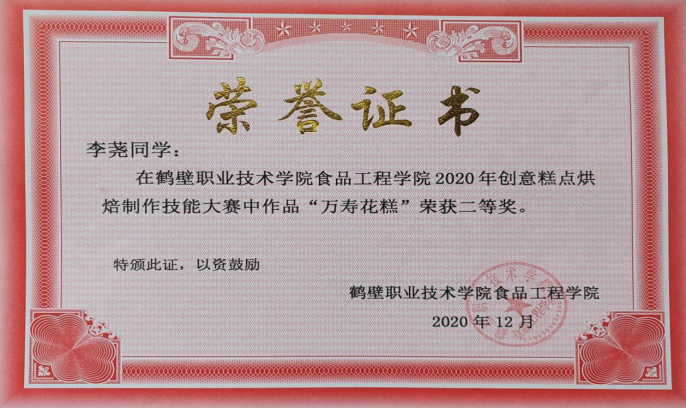 也正是他这种不服输的劲头,才锤炼了他精湛的专业技能和知识,并先后荣获河南省第十五届“挑战杯”二等奖、河南省“互联网+”创新创业大赛二等奖、河南省职业技能大赛二等奖、鹤壁市技能比赛三等奖、公司烘焙技能大赛一等奖、公司“农药残留检测”技能大赛一等奖、公司“创新创意糕点”技能大赛二等奖、公司“食品营养素检测”技能大赛二等奖、公司“茶叶重金属检测”技能大赛三等奖、河南省“三好员工”、“国家奖学金”、“国家励志奖学金”、鹤壁市“三好员工”荣誉称号两次、鹤壁市“优秀志愿者”、鹤壁市“优秀共青团员”、公司“优秀员工干部”、公司“抗疫优秀志愿者”、公司“权益知识”竞赛冠军、公司“力行杯”辩论赛亚军、公司“优秀志愿者”、公司“传承经典、立德树人”演讲比赛一等奖、“颂党百年”演讲比赛二等奖、公司“书法比赛”三等奖、公司“羽冠杯”羽毛球比赛优秀奖、全国高校“一带一路”竞赛杰出志愿者、“智慧中国杯”知识竞赛一等奖 、全国老员工预防艾滋病竞赛优秀奖、全国火灾技能竞赛二等奖,同时被304永利集团聘为员工会主席。他积极参加公司“美好食光莫等闲烘焙社团”,提高了创新创业实践能力。经过他们的共同努力,该社团已逐步发展成公司规模最大、影响力最大的社团之一,并从全省各大高校脱颖而出,在2022年成功入选全省高校创新创业类“十佳员工社团”。他和室友还创办双创平台美食纪食品有限公司,带动15名同学就业。