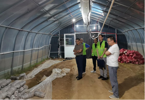在桑园村食用菌种植基地,服务团团长王跃强实地查看了前期指导生产的榆黄蘑营养袋,指出后期在发菌场所温度不要超过25℃,空气相对湿度以60%~70%为宜,同时要注意遮光及通风换气。棚温要控制在28℃以下,超过28℃要注意散堆降温或通风降温。发菌一周后,检查菌丝萌发情况。若发现菌丝不萌发应补种;若发现少量杂菌感染,应加强发菌室通风降温,控制或抑制杂菌发展。若温度过低,还需保温、升温,保证菌丝正常生长发育。一般25~30天菌丝即可长满全袋。王跃强看到为榆黄蘑大棚降温的地源水被直接排放,资源未充分利用,提出可充分利用该低温水源探索菌鱼轮作,循环种养模式,创造性转化资源,通过科学管理,着力推进农业资源利用节约化、生产过程清洁化、产业链条生态化,促进农业绿色发展,形成以食用菌产业为纽带的生态农业循环经济模式,串起农业生态链,增加农民收入,推动乡村振兴。
